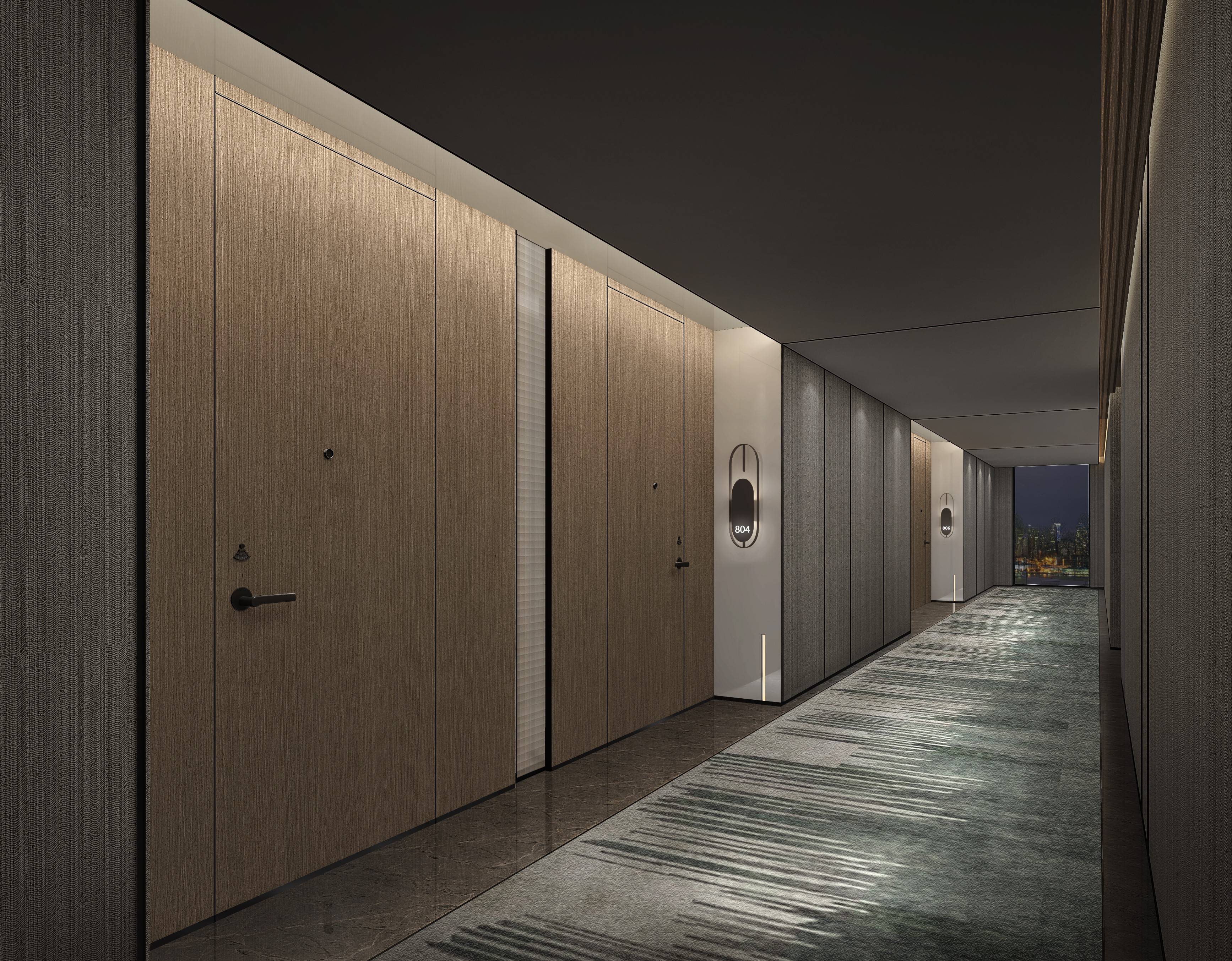 悠長的走廊盡頭開出大面積的落地窗,感受那“偷得浮生半日閑”的生活藝術(shù),黃昏,日暮,與我同在。